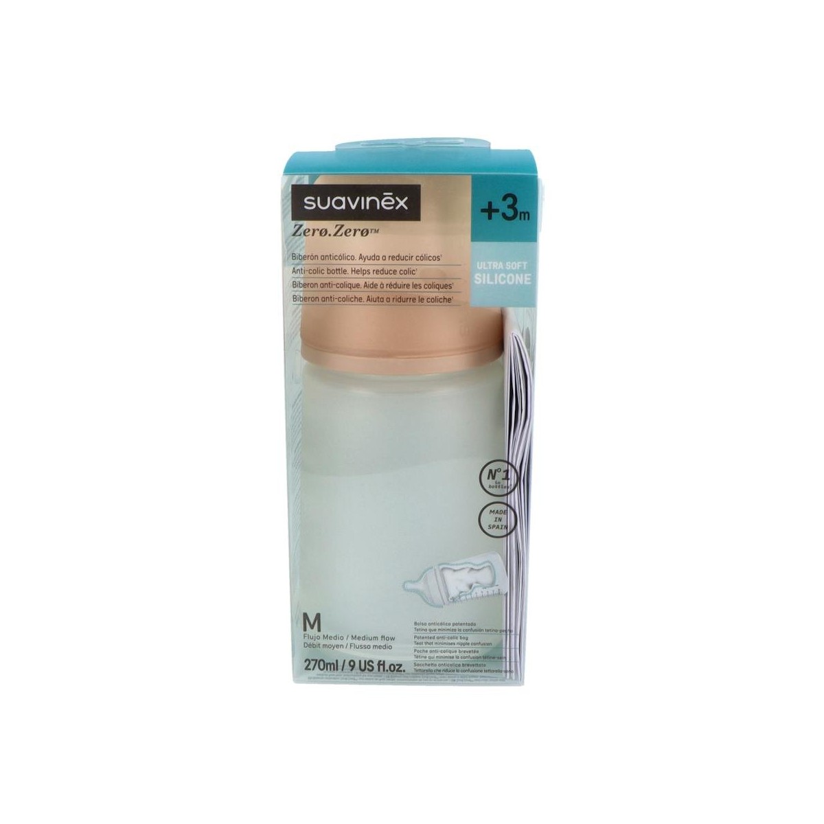 Biberon Suavinex Zero Zero Antic Tetina Sil Flujo Medio 270 Ml es un biberón que permite un flujo medio de leche y es ideal para bebés a medida que crecen y su capacidad para succionar y digerir se desarrolla.